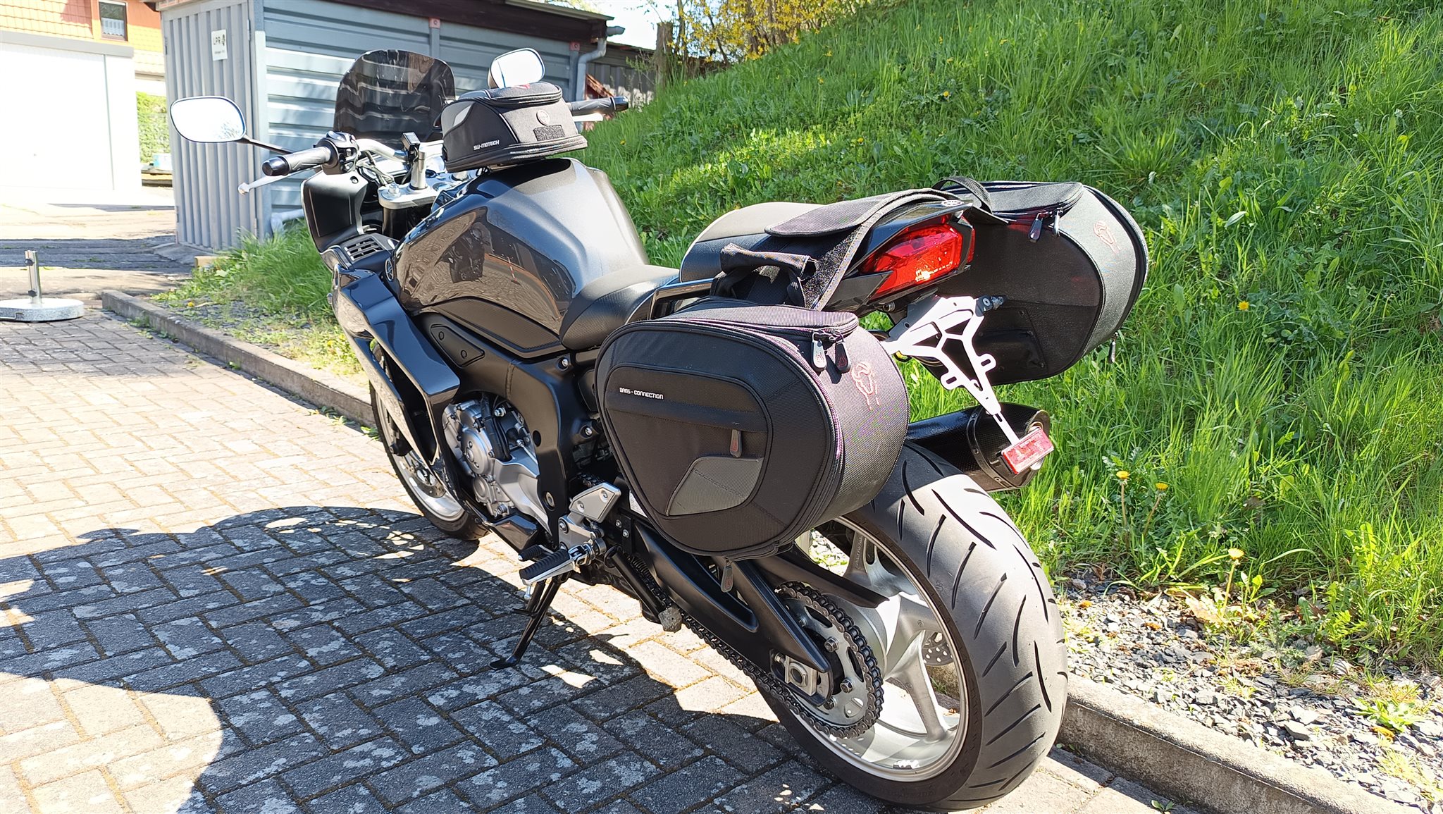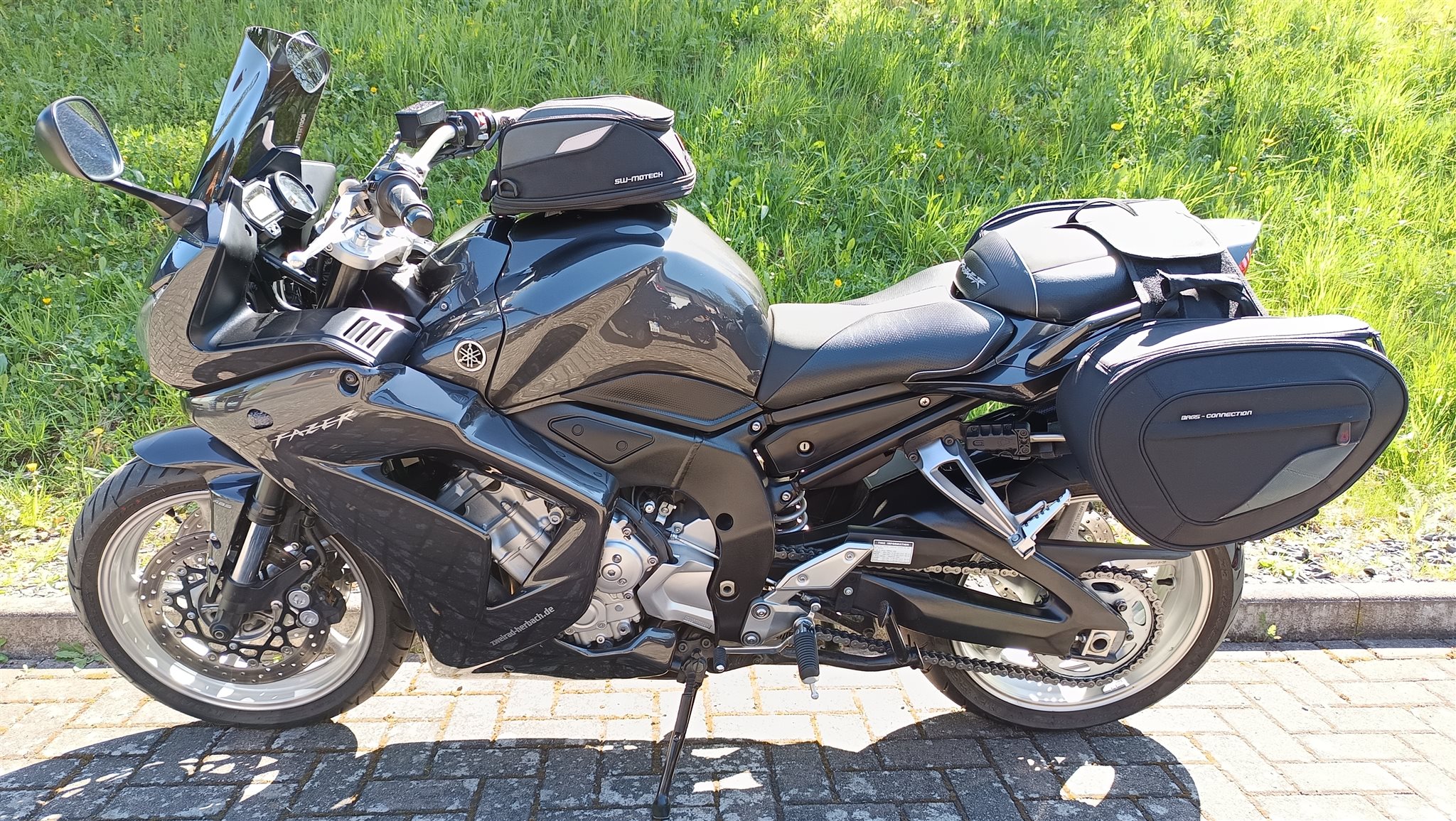 Original Yamaha Vollverkleidung; Akrapovic Endschalldämpfer; LED-Blinker; kurzer Kennzeichenhalter; SW Motech Satteltaschen & Tankrucksack; Ganganzeige; getöntes Windschild; Superbikelenker mit ABE; Jahresservice neu; TÜV/AUK neu (bei Übergabe)